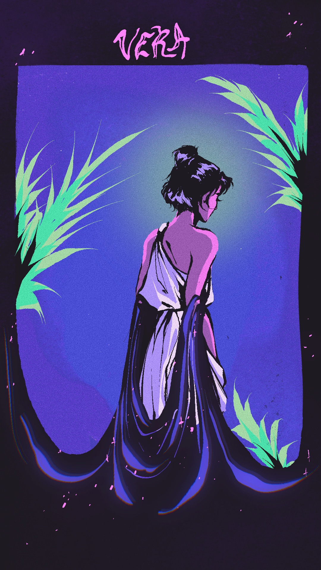 Among those surviving the unforgiving political and environmental climate is Vera Westin, a scrappy reporter from the rapidly desertifying town of Tunn. Desperate for an escape, opportunity finds her in the form of an aloof mercenary named Tim Gallio, recently arrived from the capital city and looking for a secret buried deep in Tunn's outskirts. A deal is struck, and together they unearth a hollow vessel of chrome, carved in the shape of a three–armed woman—a chromaton.